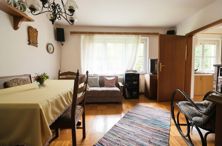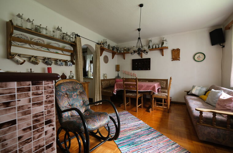 Das Haupthaus selbst überzeugt durch seine Substanz, die gepflegte Ausführung und den besonderen Charme eines Altbaus, der 2015 liebevoll saniert wurde. Zehn Zimmer, zwei Bäder, ein Kamin, Terrasse und Balkon mit Bergblick – hier lässt sich Leben gestalten, in all seinen Facetten.